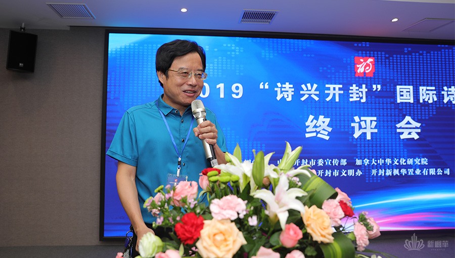 7月8日,由中华诗词学会、中共开封市委宣传部、加拿大中华文化研究院主办,开封市文学艺术界联合会、开封市文明办、开封新枫华置业有限公司、河南大宋风文化产业有限公司共同承办的2019“诗兴开封”国际诗歌大赛终评会在枫华大厦七楼举行。中华诗词学会副会长林峰,开封市原正市长级干部张家顺、中共开封市委宣传部副部长赵伟东,中华诗词学会副会长王改正,中国诗歌学会会长助理兼常务秘书长大卫,中华诗词学会副会长兼秘书长刘庆霖,中国楹联学会副会长刘太品等领导和专家学者参加了此次终评会。当天下午各项奖项分别揭晓并举行了新闻发布会对社会公开发布。